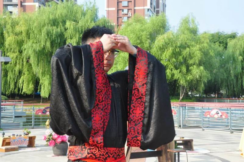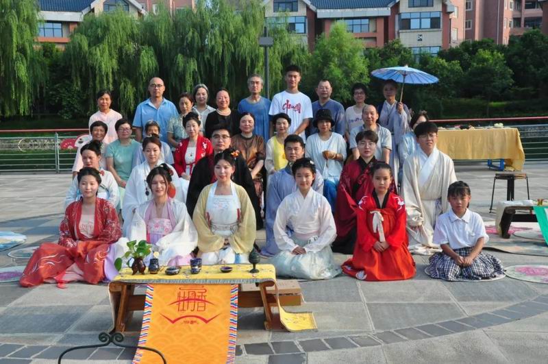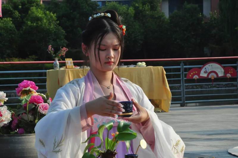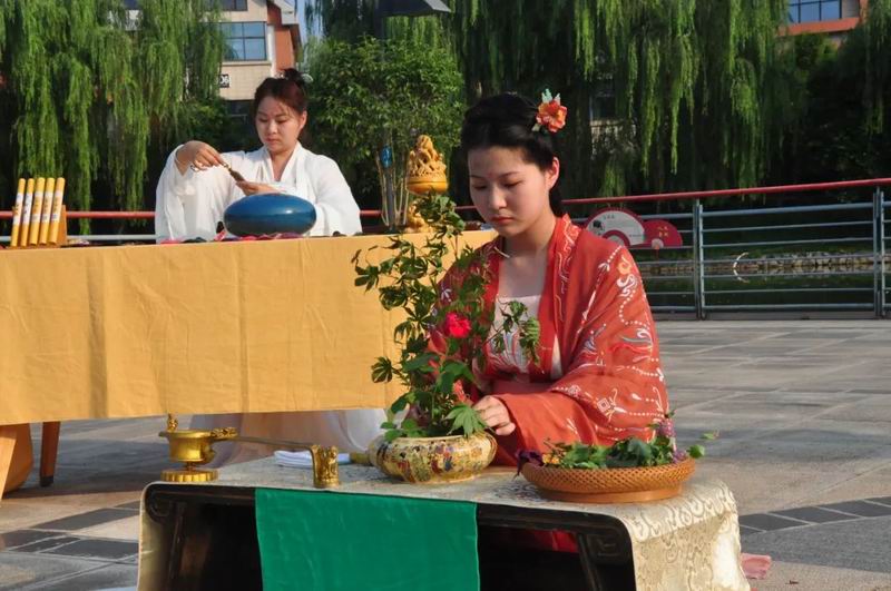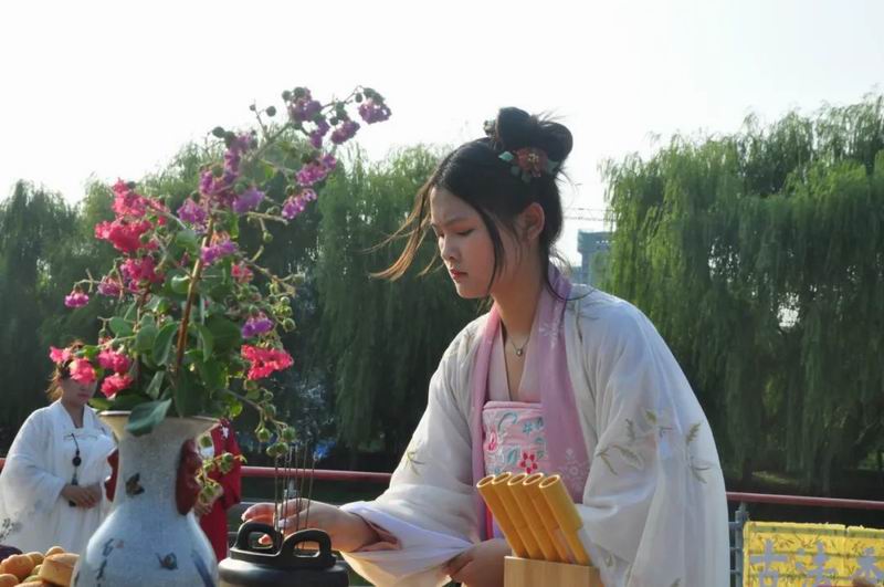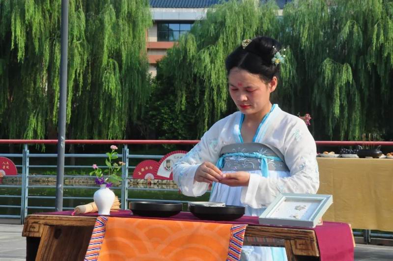 祭拜儀式結束后,傳統文化愛好者在古樸深沉、韻味悠長的古琴演奏中展示了制香、茶藝、古法造紙、香染等非遺文化和傳統技藝。